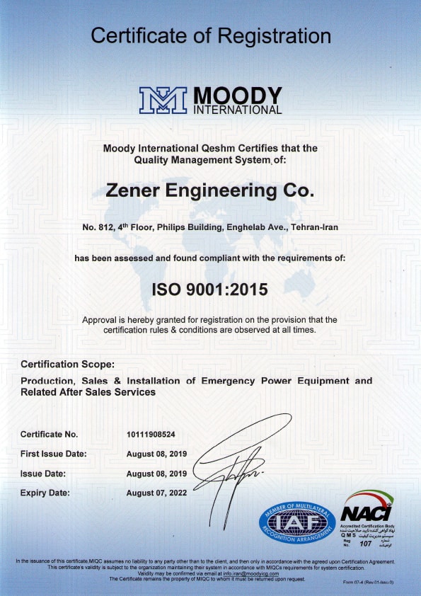 From 2000 to 2009, Zener secured exclusive business partnerships with well-known international brands to supply UPS, batteries, and generator sets. including with famous companies such as Riello and Aros of Italy, Ablerex of Taiwan, Liebert of United States, Newmax and Rocket of South Korea and PowerCo of England. In 2009, we formed a renewable energy systems department and conducted numerous research projects. Zener is now officially certified by top brands to provide solar panels, inverters, solar chargers, and related products. In 2011, we joined the Iran Solar Industry Association, Iran Electrical Syndicate, and Iran-Italy Chamber of Commerce. We achieved ISO 9001:2008 quality management system certification in 2013.